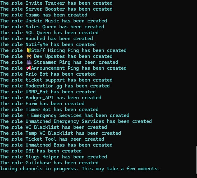 Clone any discord server, Roles, Channels, Perms, Emojies, DOSE NOT COPY MESSAGES OR BOTS!